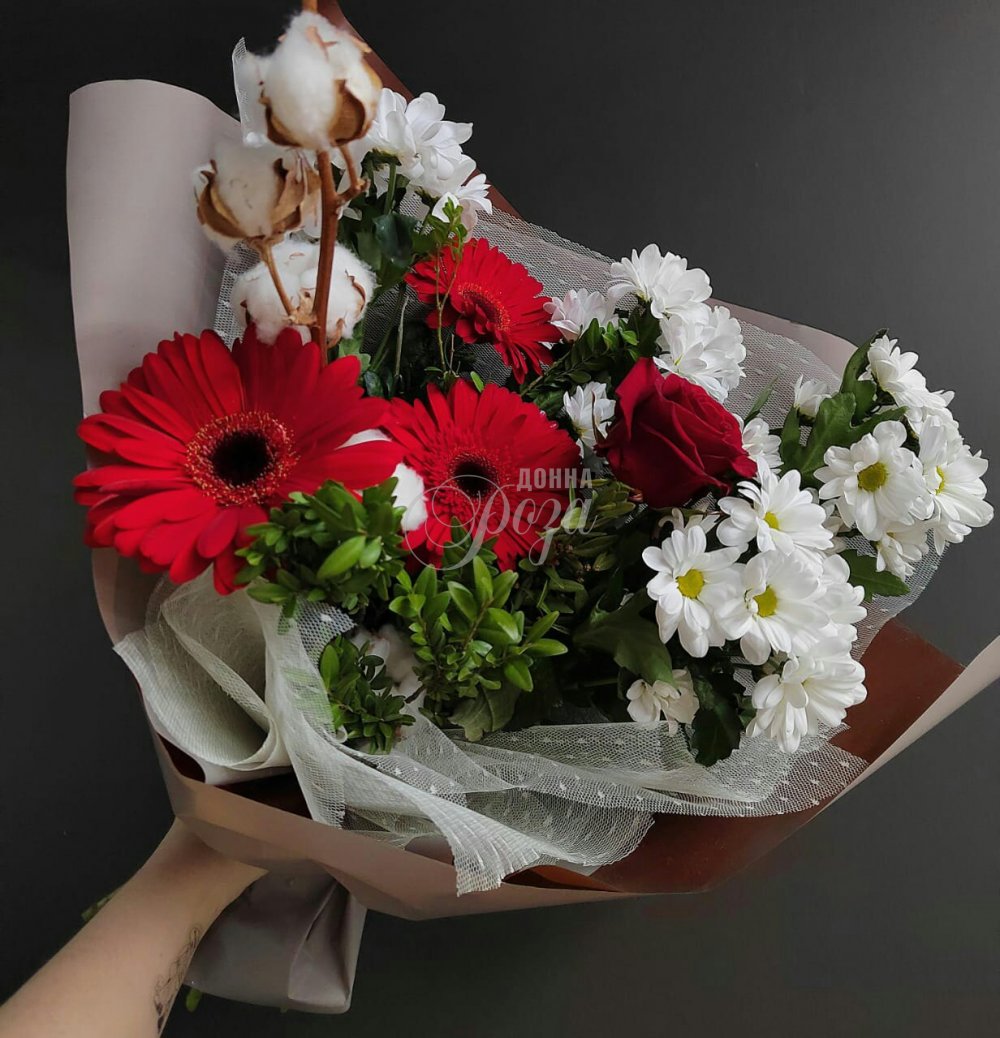 Фактурный сборный букет с добавлением хлопка